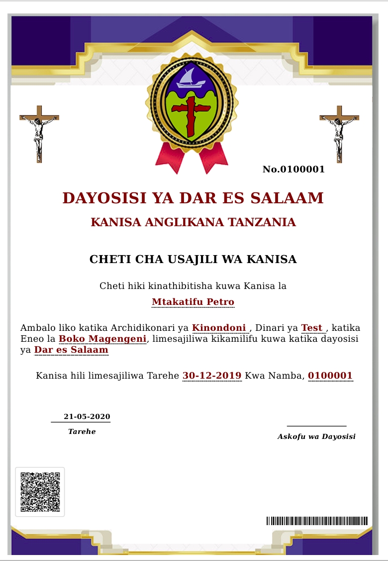 Fomu hii ni mahususi kwaajili ya kusajili mitaa yote iliyoko chini ya dayosisi ya kanisa la Anglikana, dayosisi ya Dar es salaam,  fomu hii ijazwe na Kasisi/ Katibu wa mtaa/ kiongozi  wa mtaa  aliyeidhinishwa na mtaa kusimamia maswala ya kiutawala ya mtaa husika.